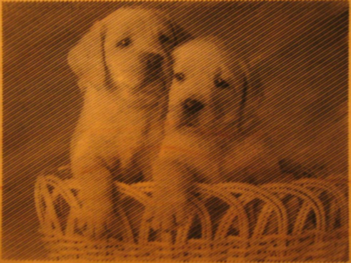 With RasterPhoto (which is part of ConstrCAM-3D CAD CAM) photos are converted into punctiform milling data. This produces a rasterized picture which is similar to the pictures printed in newspapers. The light/dark difference (grey scale) on the photo occurs through the dots and lines with according thickness and closeness.