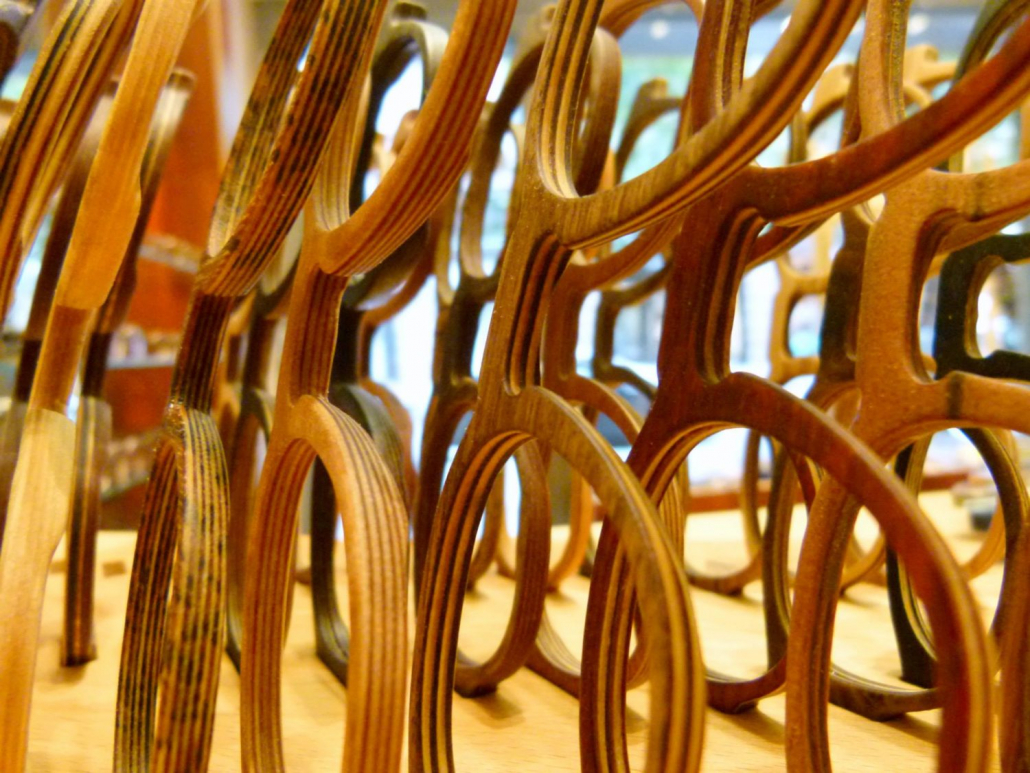 The glasses are all unique. Here the customerdetermines design. The choice of the shape is almost endless: The company Lauer manufactures half-glasses, oval eyeglasses, round spectacles and forms such as Vintage, Classic and Panto with the CNC milling machine S-400 / T . It is always on the ensured that the Wooden glasses with their horn temples are in perfect harmony with the head shape of the customer.