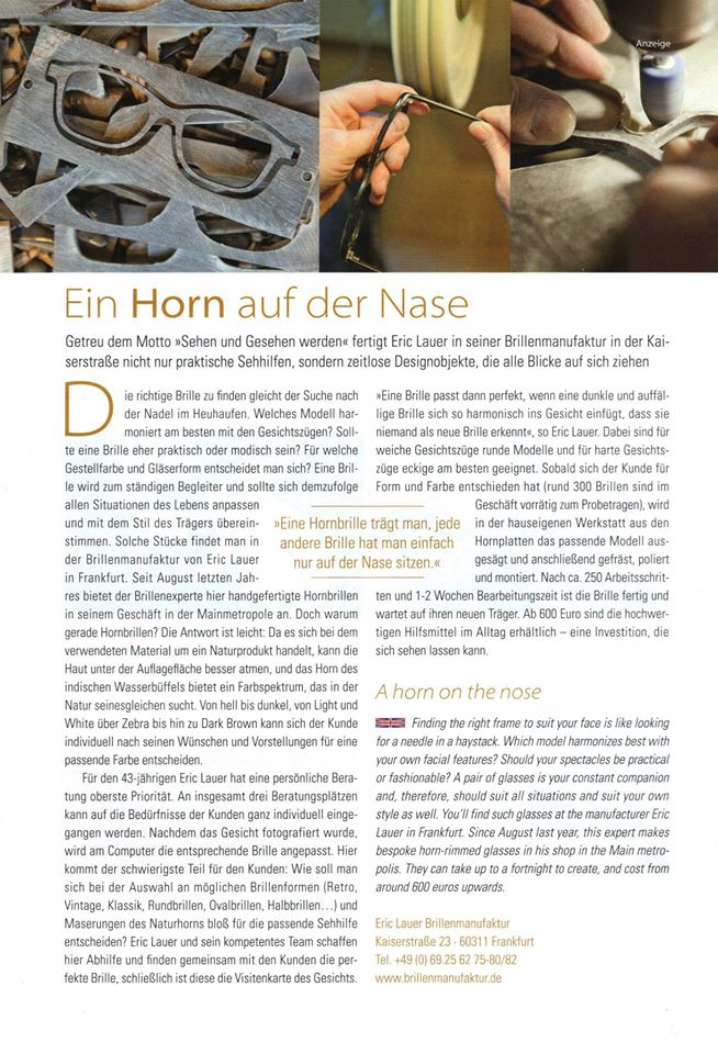 The eyewear manufacturer Lauer from Frankfurt relies entirely on individuality and top quality in the production of their eyeglasses, eyeglass frames and eyeglass temples. Only high-tech materials are used such as special plywood, wood veneers and genuine horn ar – buffalo horn.