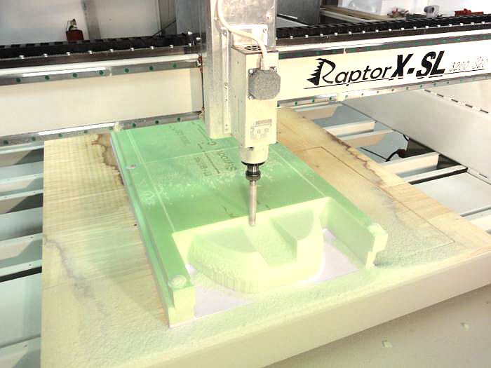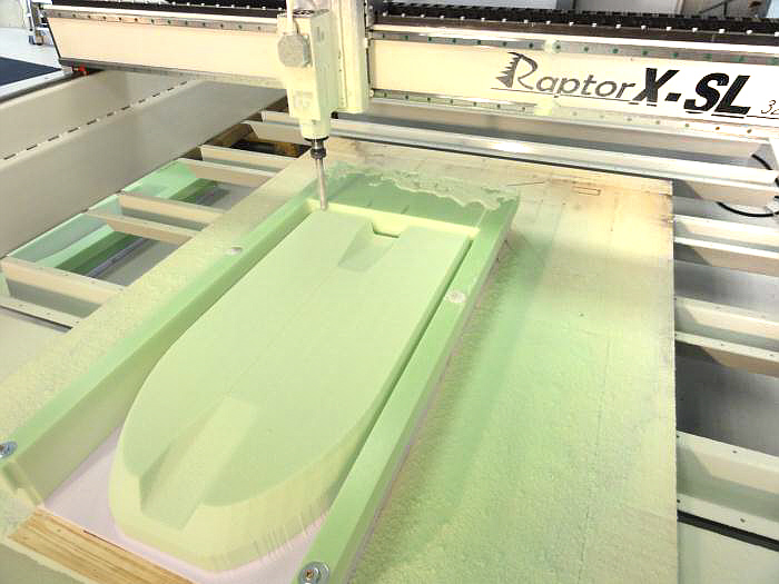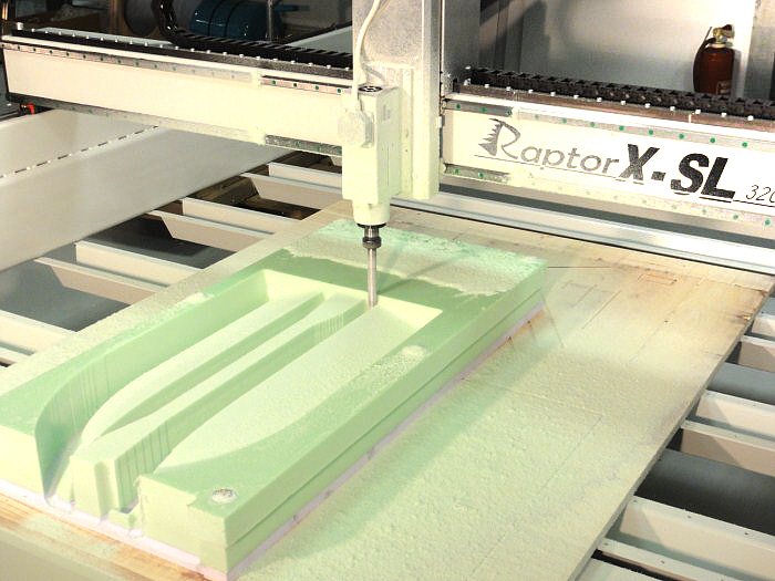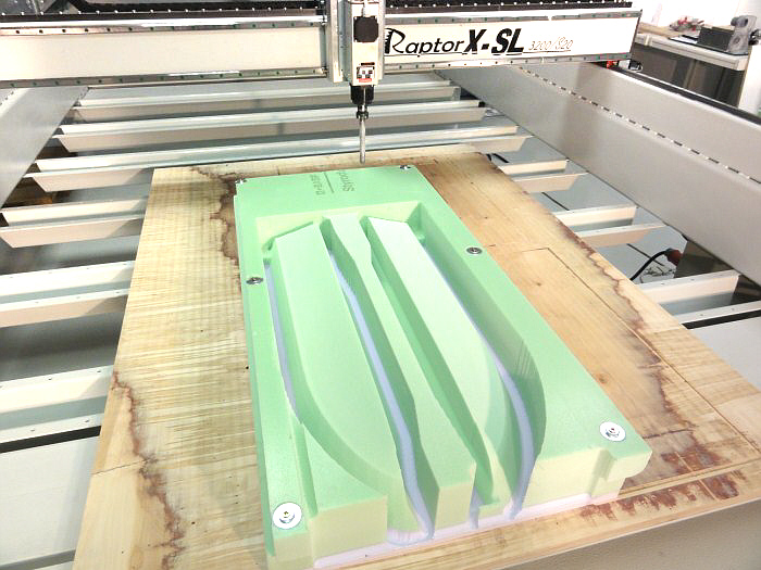 There are special lacquers or roll coatable and sprayable two-component coatings for the surface treatment of Styrofoam, which make these materials shine even in high-gloss colors and, above all, are even weatherproof. Thus, XPS / Styrodur is the ideal material for rapid prototyping, trade fair construction, 3D mold making or large-scale mold making.Also, the RaptorX-SL CNC Milling Machine is suitable for 3D machining in wood, metals and even stone.