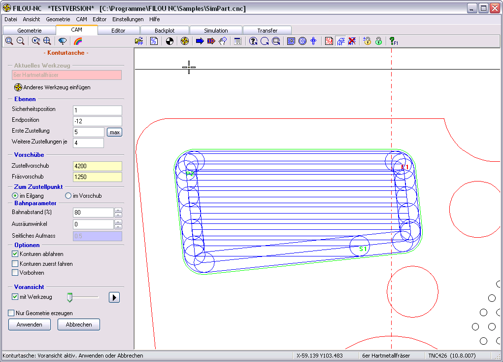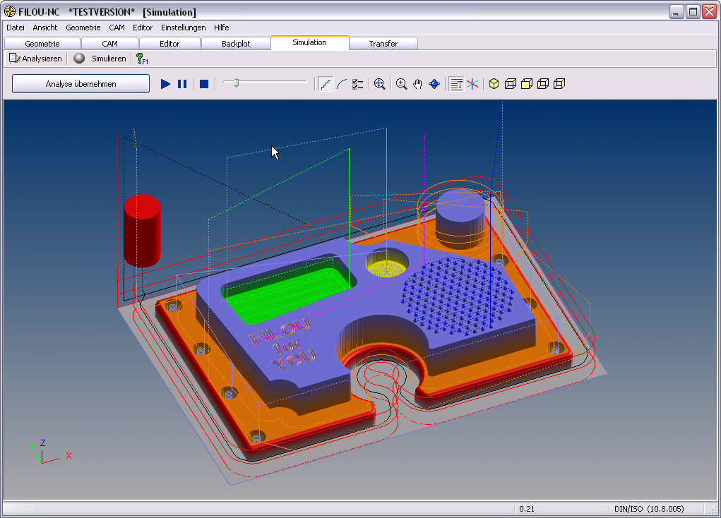 Now, everything from the first drawing to data transfer to KinetiC-NC can be done with FILOU-NC. This means that still DXF files can be imported and … now also finished CNC-programs can be imported and simulated.