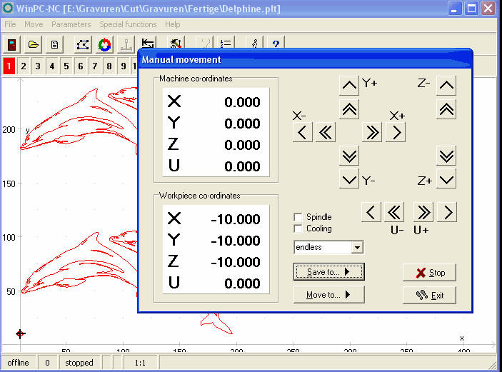 Win PCNC offers full and safe control of the connected machine with various functions. Manual movement is carried out step-by-step with the keyboard, mouse buttons or joystick.