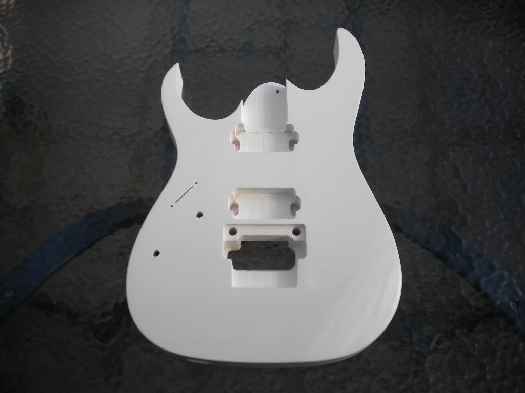 Also completely new guitar bodys are designed on customer request. A 3D test milling in PUR foam or another low-cost material is first produced. This allows the customer to look at his later product as a model and see if the design is actually pleasing and lays well in the hand.