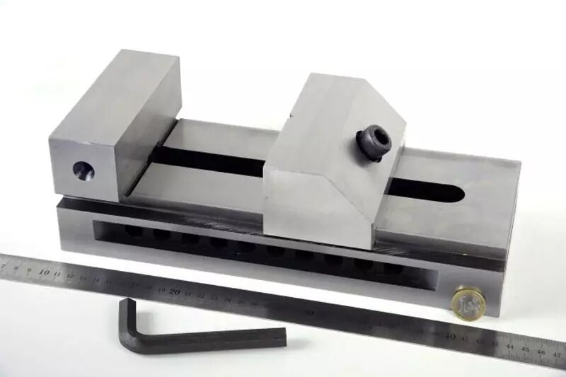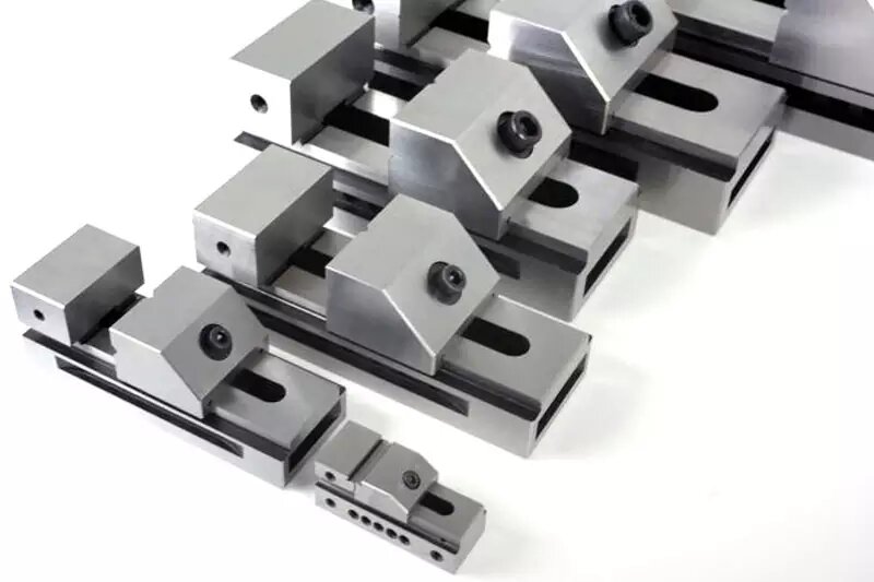 By using the grooves provided on the base of the small and large precision pull-down vices, they can be quickly and reliably attached to the T-slot plate, worktop or workbench using clamping claws.