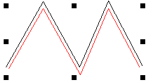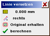 The marked paths (tracks, sections) are converted into contours (double line) with the specified separation. The minimum vector length is 0.001mm, all shorter vectors (e.g. in rounding offs) are removed. |