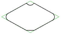 Eine Ecke aus 2 Vektoren abrunden oder mit einer Schrägen versehen. Ist ein oder beide Eckvektor(en) zu kurz, dann wird keine Abrundung oder Schräge erzeugt. In diesem Fall muß zuvor eine klare Ecke konstruiert werden.