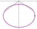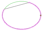 Die Strecke zwischen 2 Punkten durch einen Kreisbogen ersetzten. Zwischen diesen Punkten muß noch ein 3. Punkt vorhanden sein. Die Auflösung des Bogens wird durch Eingabeparameter . Kreisauflösung bestimmt.