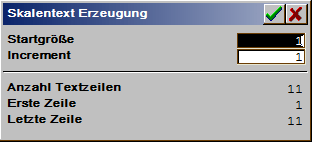 Note: For easier input of several scale texts, using the cursor keys , <cu< b=””></cu<>Dn>, , , it can be indexed into the previous or following text line (scale division).