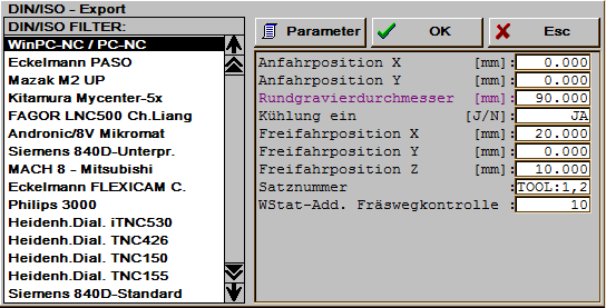 In the scale program very simple linear and circular scales, with and without script, can be input. Scales can be milled on flat surfaces (flat engraving) or, via DIN/ISO export, on cylinders.