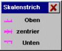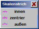 The graduation distribution is determined through a fixed formula. For linear scales the position of the graduation is calculated using ASin(x/as)/Pi*length [x=graduation No. / as=number of graduations / Pi=3.14..]. The zero graduation lies in the middle on the scale Position. To create a scale the number of graduations must still be entered for a half-side. |