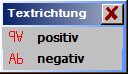 Input text line width. The inputs distort / width are alternatives. The last input is always relevant for the text line. The distortion calculated using the text line width is displayed under ‘distort:’. A negative text line width results in a mirroring in the lines run direction.